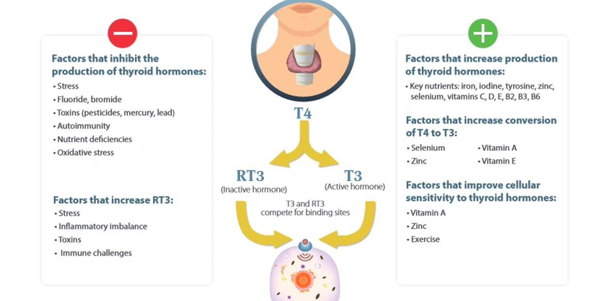Normal thyroid status is dependent on adequate levels of many trace minerals for the synthesis and metabolism of thyroid hormones. The minerals zinc and selenium are required cofactors for the enzymes that convert T4 to T3. Selenium deficiency has been shown to contribute to decreased T4 to T3 conversion. Supplementation of selenium can also help decrease thyroperoxidase (TPO) antibodies in thyroid autoimmunity. Supplementation with zinc has been shown to restore T3 levels in patients with normal T4 and low T3, demonstrating its role in the conversion process. Vitamin A and vitamin E are also necessary for normal thyroid hormone manufacturing.
